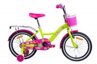 Aist Lilo 18 – яркий велосипед для девочки возрастом от 5 до 8 лет. Версия 2020 года выпуска имеет три цветовых решения: жёлтый, оранжевый, красный. Модель имеет заниженную стальную раму hi-ten, одну скорость, которую обеспечивает классическая трансмиссия, два тормоза: передний V-brake и задний ножной. Колеса диаметром 18" с дополнительными колесами по бокам заднего колеса и покрышками Wanda 18x2.125", защита цепи, система рулевого управления с жесткой стальной вилкой обеспечивают детям комфортное и безопасное катание. Дополнительно велосипед оснащен багажником, корзинкой и звонком.