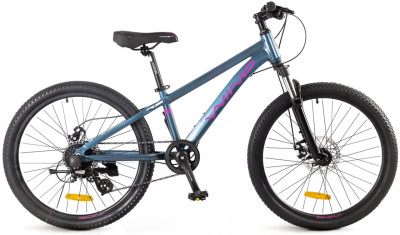 Подростковый велосипед на 24" колесах для мальчиков 8-11 лет ростом 125-145 см. Алюминиевая рама, амортизацилонная вилка, трансмисстя L-TWOO A3 на 8 скоростей, дисковые тормоза.
